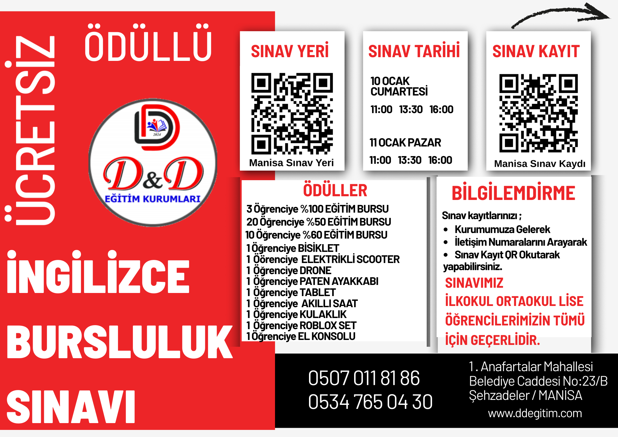 10 - 11 Ocak Ücretsiz Ödüllü İngilizce Bursluluk Sınavı